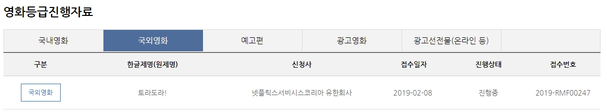 넷플릭스가 워킹데드 모자이크 처리된 기존 국내 방영본 대신 무삭제판으로 심의 따로 신청한 적 있긴 한데... 토라도라는 국내 vod 서비스 이미 다 올라서 등급있을텐데 왜 심의 넣는지 궁금하긴 하네요 | 19.02.08 23:32 | | |