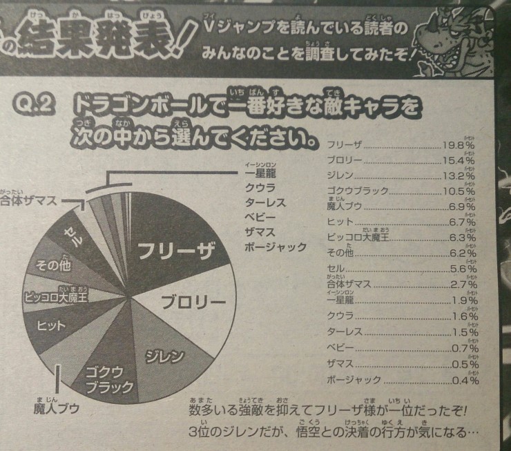 1위랑 2위는 예상대로인데 3위가 의외네요. 오공 블랙도 제법 선전했는데... 아이고 이제 셀은 진짜 안습의 나락으로 떨어졌네요. 만약 프리저가 부활의 F부터 다시 부각되지 않았다면 1위는 브로리였으려나요.