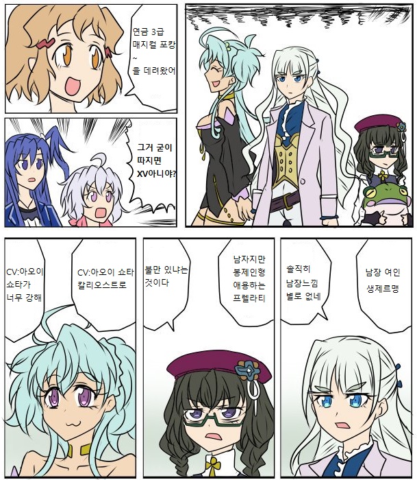 히비키:연금 3급 매지컬 뽀캉~을 데려왔어 크리스:그거 굳이 따지면 XV 아냐? 히비키:남장의 여인(고울 麗 자를 씀) 생제르맹 생제르맹:솔직히 남장 느낌 그다지 없네 히비키:원래 남잔데 봉재인형 애용 프렐라티 프렐라티:뭔가 불만 있냐는 것이다 히비키:CV/아오이 쇼타 칼리오스트로 히비키:『CV/아오이 쇼타』가 너무 강해 번역은 의역이 좀 있습니다만 얼추 뜻은 해석.... 려자 한자 읽기 참 힘들었습니다
