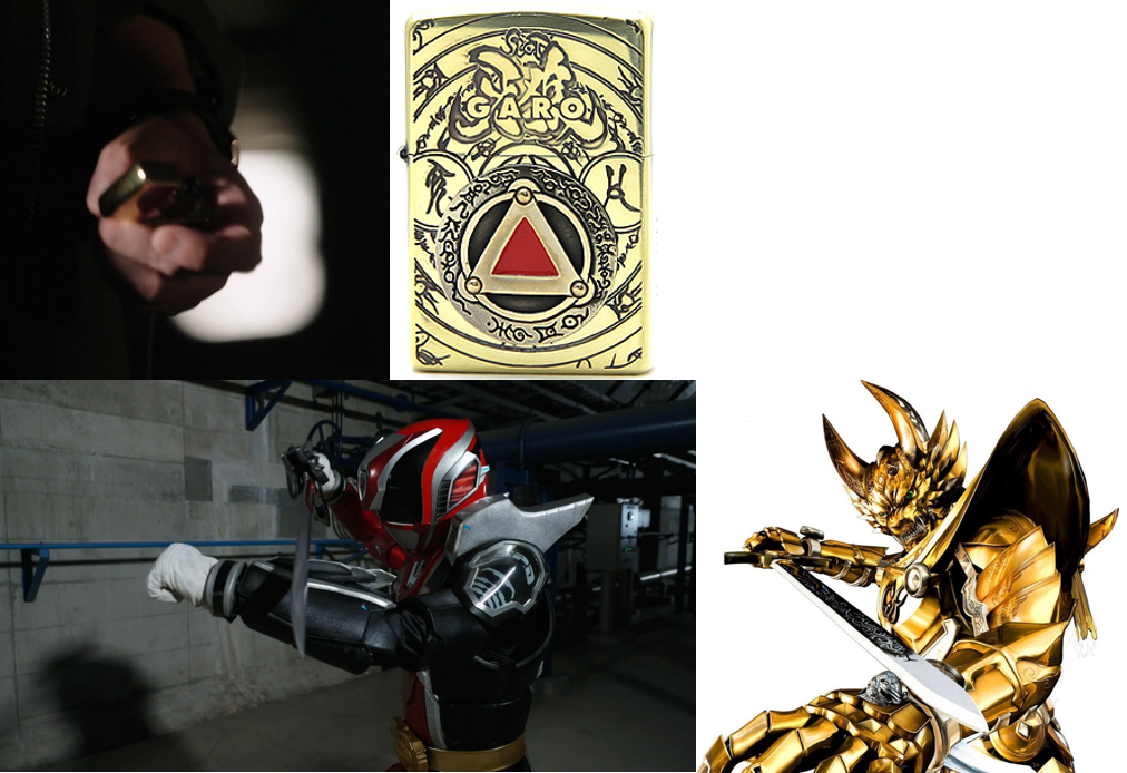 변신시 나오는 이펙트 색깔이 녹색이라는 점... GARO의 사에지마 코우가의 마도화 색도 녹색... 그 밖에 호러를 판별할 때 사용되는 마도화 지포라이터라던지.. GARO의 필살기 포즈같은 것도 있지요.