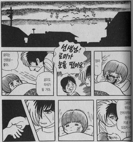 만화에서의 '로미'와의 첫만남 입니다. 상당히 꾀죄죄한 모습이군요. 그에비해 애니는 조금더 귀여움을 강조하는듯 합니다.