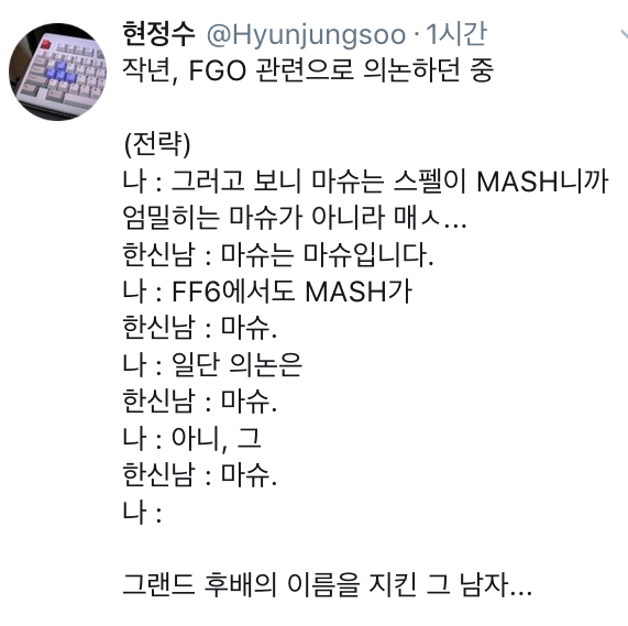 매쉬라니.. 컥.. 큰일날뻔했군요 ; 마슈멜로의 마슈인데 .. 그말대로면 매쉬멜로가 되잖여 !