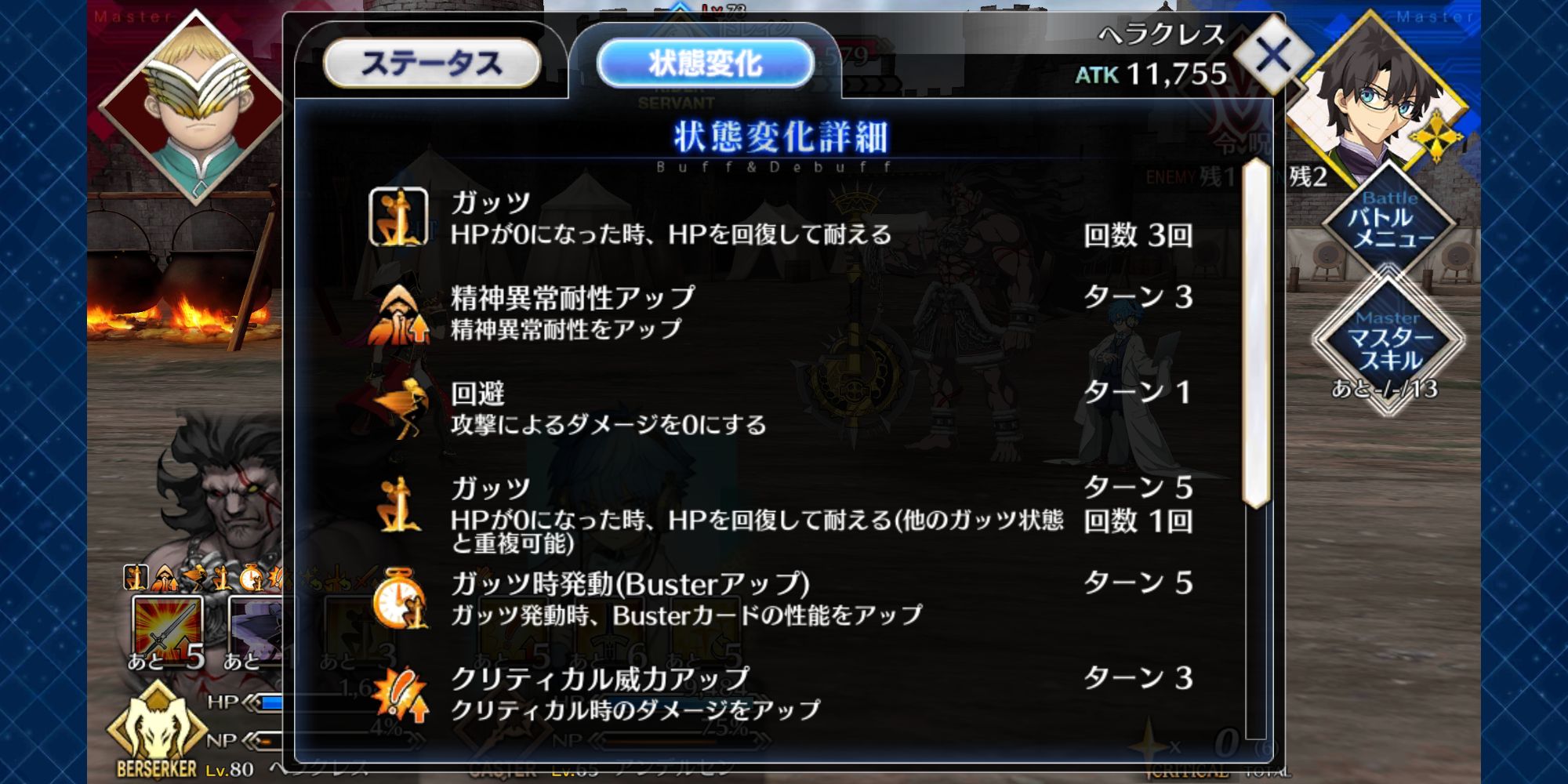 1. 나타의 선공 > 헤라클레스의 반격. 용맹, 심안 발동 후 첫 교전 종료.