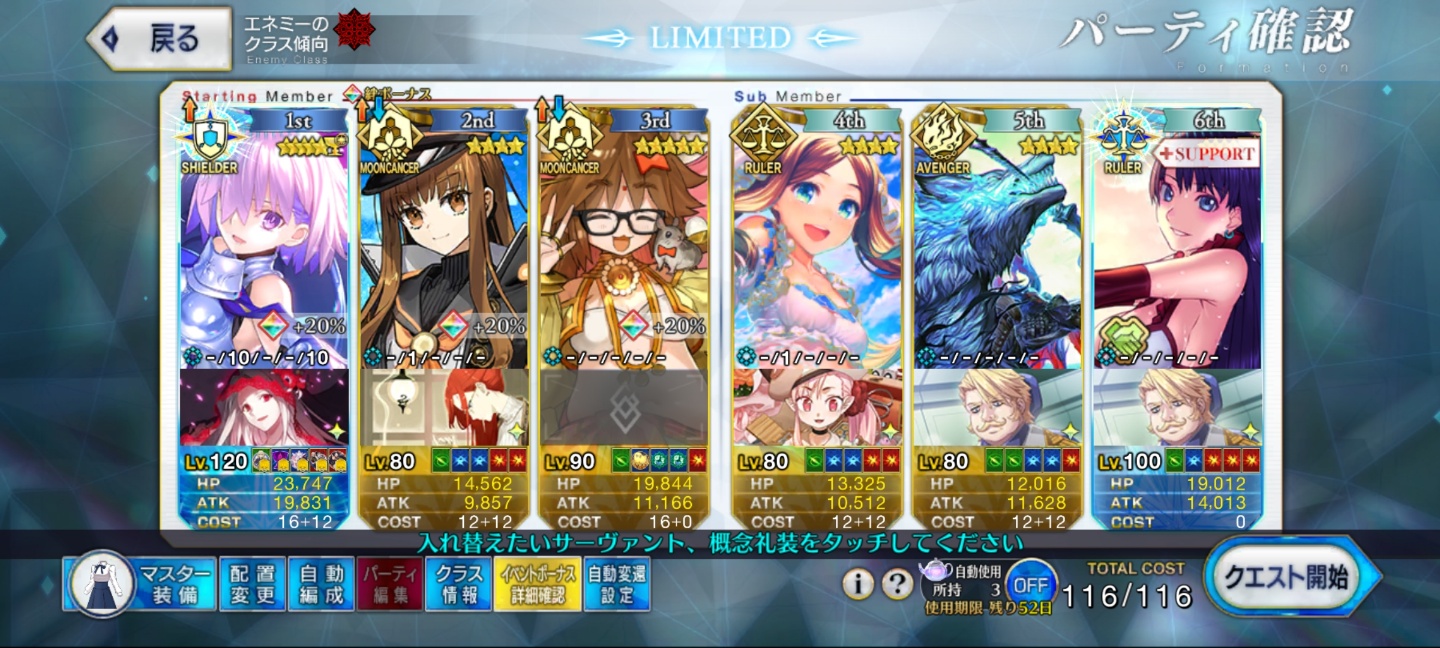마슈는 성능픽입니다만? (콩깎지) 일단 저는 아직 그랑마리는 별로 안가봐서 잘 모르겠고, 플레어마리 3턴구성만ㅎㅎ 첫턴에 마슈 보구1 → 2, 3턴에 각각 마슈 보구2를 연사해서 잡는 식입니다. 2턴째에 영의로 스타 벌어서 2스로 NP풀챠지, 동시에 3스 쓰고 하쿠노로 마슈 아츠크리티컬 나올때까지 돌려서 보구 쓰고 다시 NP 풀챠지. 여유가 있으면 마슈 브레이브체인으로 데미지 보충하고, 지나코는 공뻥20%+보뻥30%+질서특공50%에 NP20%도 돌릴 수 있는 우수한 서포터입니다. (다만 그랑마리는 혼돈이라 특공무효) 솔직히 하쿠노의 카드짤짤이가 별도 벌 수 있으므로 예장으로 별을 벌 필요는 없을지도 모르겠지만, 안정화를 위해서ㅎㅎ 다만 제 마슈는 금포우나 발바닥까지 풀강화를 걸어놓은 상태라, 100마슈로 가능할지는 확신은 없네요. ^^;;;