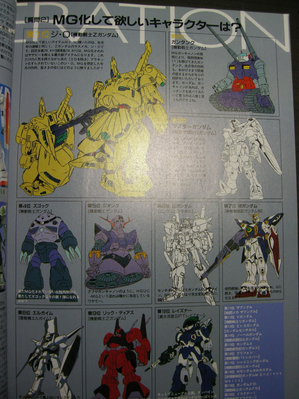 하비저팬 02년 3월에 실린 정보인데, 적중율이 높아 앞으로 출시될 MG를 예상해보는데 약간이나마 도움이 될거 같네요.