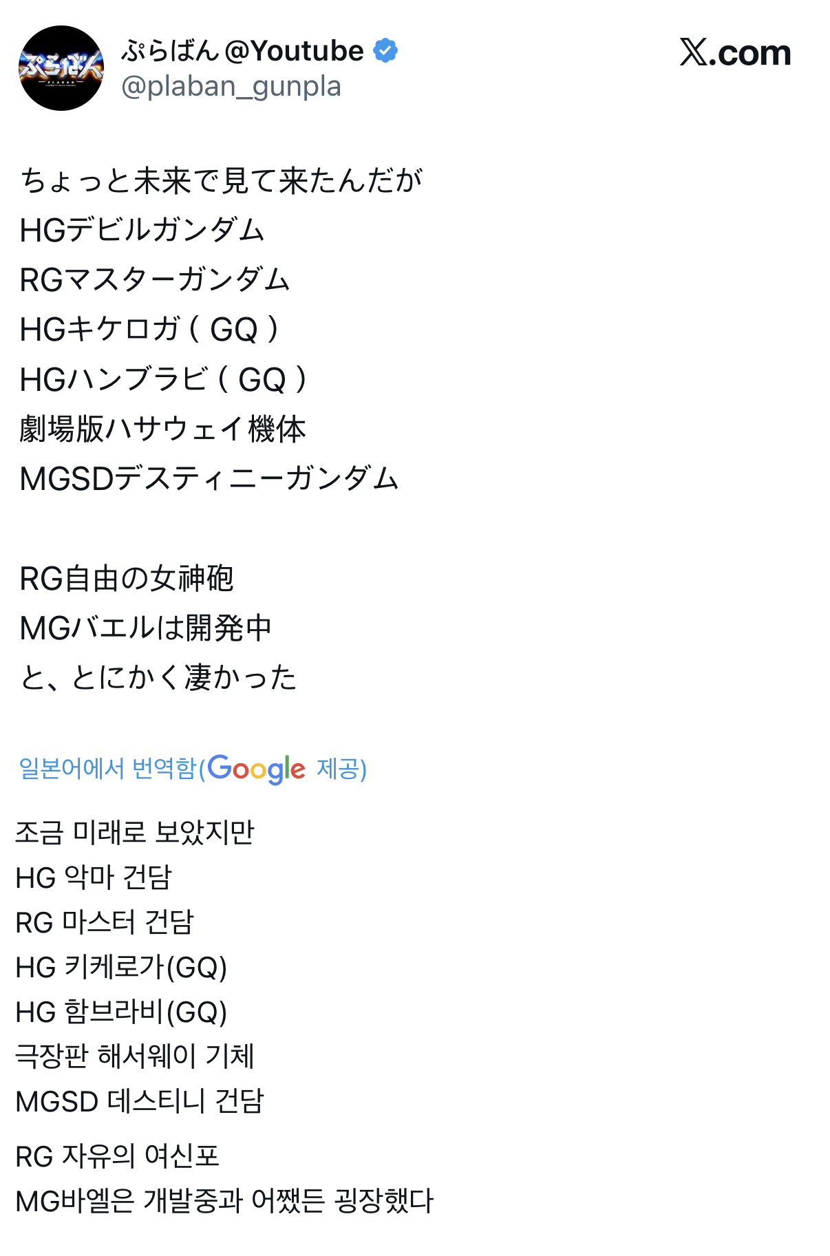 RG 마스터는 시간 문제지 결국 나올 킷이긴 하죠. 그와중 일본 반응은 다들 볼트 건담을 찾고 있는... | 25.11.13 22:13 | |