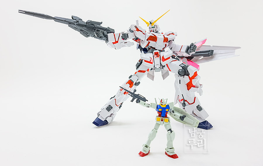 지난 시간 만들었던 퍼스트 건담 EG와의 크기 비교.