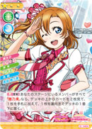 【등장 시】당신의 무대에 있는 멤버가 전부 「호노카」라면, 덱 위에서부터 카드를 2장 보고, 1장은 핸드에 추가하고 1장은 뒤집어서 덱 제일 아래에 둔다. |