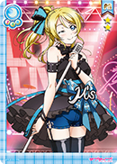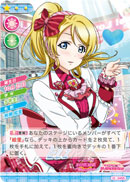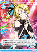 【등장 시】카드를 1장 뽑는다. 【라이브 참가 시】당신의 무대에 있는 멤버가 전부 「에리」라면, +【스마일】【퓨어】를 한다. |
