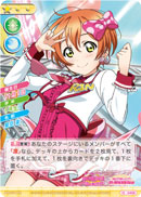 【등장 시】카드를 1장 뽑는다. 【라이브 참가 시】당신의 무대에 있는 멤버가 전부 「하나요」라면, +【쿨】【스마일】을 한다. |