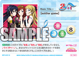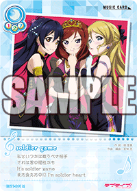 에리, 마키, 우미로 「soldier game」의 《라이브》에 참가하여 공개된 악곡 카드를 늘리고,