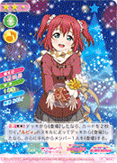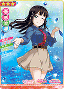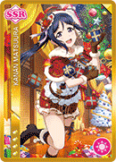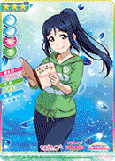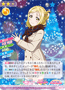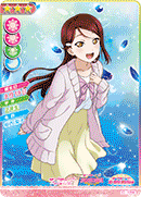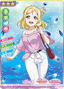 【등장 시】당신의 덱 제일 위의 카드를 공개한다. 공개된 멤버가 「마리」라면, 《권유》한다. 【라이브 참가 시】당신은 핸드에 있는 「마리」의 카드 1장을 전원에 보여줄 수 있다. 그렇게 했다면, +【스마일】이나 +【퓨어】나 +【쿨】을 한다.(그 후, 보여준 카드는 핸드로 되돌린다.) |