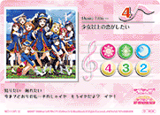 【라이브 참가 시】이 《라이브》에 참가하는 멤버가 전부 「하나마루」라면, 참가하는 다른 멤버의 【스마일】과 【퓨어】와 【쿨】의 피스를 전부 【올】로 바꾼다. |