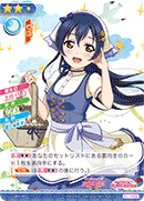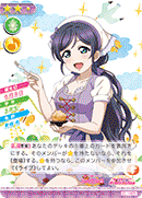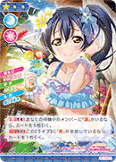 【등장 시】당신의 대기 중인 멤버에 「노조미」가 있다면, 카드를 1장 뽑는다. 【라이브 성공 시】이 《라이브》에 「우미」가 참가하고 있다면, 카드를 1장 뽑는다. |
