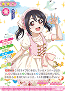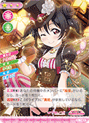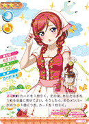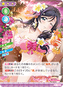 【등장 시】당신의 대기 중인 멤버에 「마키」가 있다면, 카드를 1장 뽑는다. 【라이브 성공 시】이 《라이브》에 「니코」가 참가하고 있다면, 카드를 1장 뽑는다. |