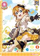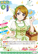 【등장 시】당신의 대기 중인 멤버에 「하나요」가 있다면, 카드를 1장 뽑는다. 【라이브 성공 시】이 《라이브》에 「호노카」가 참가하고 있다면, 카드를 1장 뽑는다. |