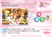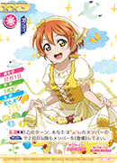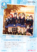 【라이브 성공 시】이 《라이브》에 【RUSH】를 가진 「μ‘s」의 멤버가 참가하고 있다면, 카드를 2장 뽑는다. 【라이브 성공 시】이 《라이브》에 【LIVE】를 가진 「μ‘s」의 멤버가 참가하고 있다면, 핸드에서 【☆】을 가지고 있지 않은 멤버 1명을 《등장》시킬 수 있다. |