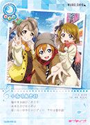 【등장 시】당신의 대기 중인 멤버에 「호노카」가 있다면, 카드를 1장 뽑는다. 【라이브 성공 시】이 《라이브》에 「코토리」가 참가하고 있다면, 카드를 1장 뽑는다. |