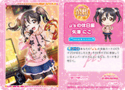 【자동】당신이 「μ‘s」의 악곡 카드를 《라이브》 할 때, 이전 당신의 턴에 《라이브》하지 않았다면, 이 《라이브》에 참가하는 멤버 1명에게 +【올】을 한다. |