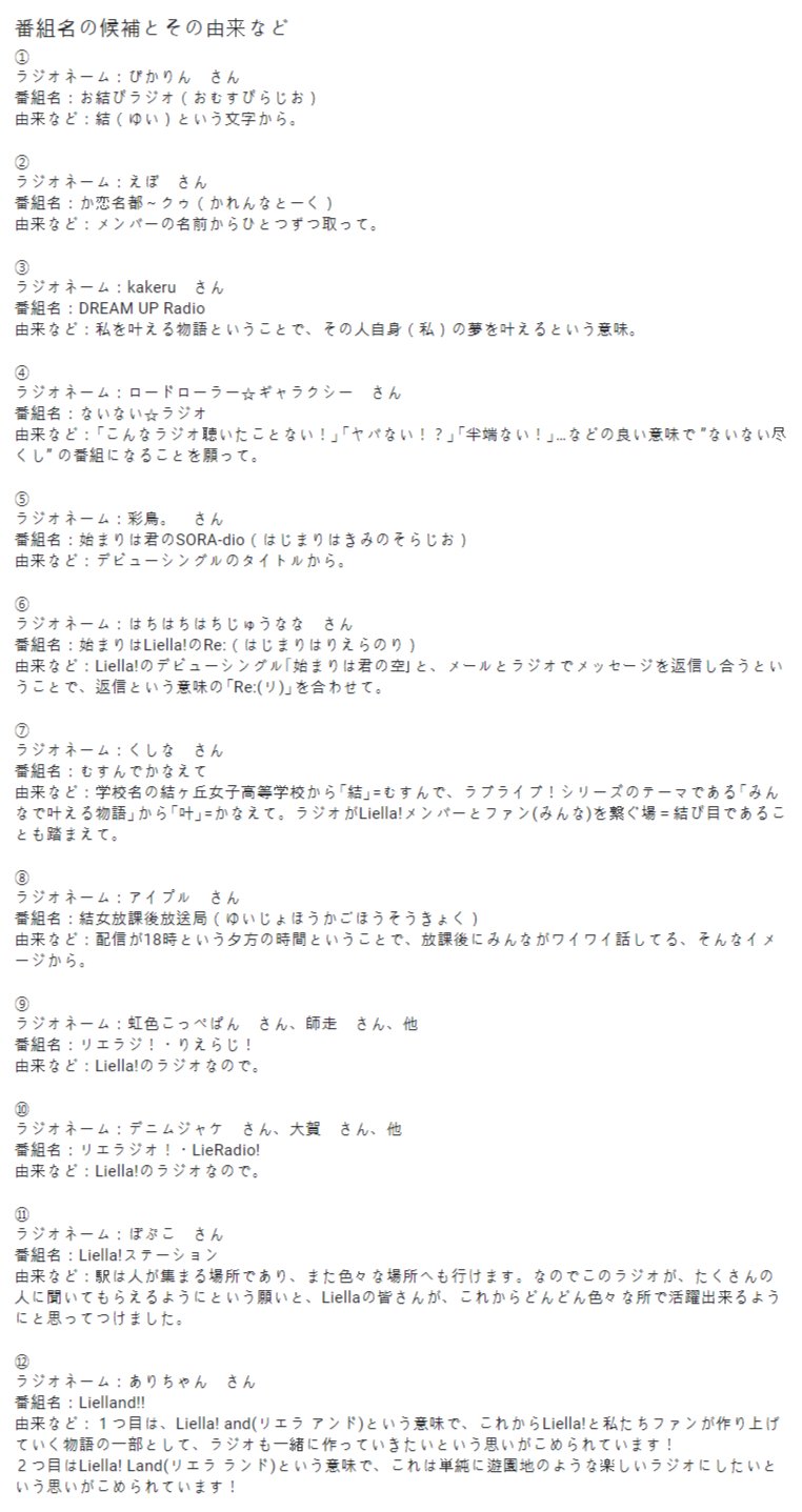 두번째는 Liella! + Land라는 의미로, 이건 단순히 유원지처럼 즐거운 라디오가 되었으면 하는 마음을 담아서