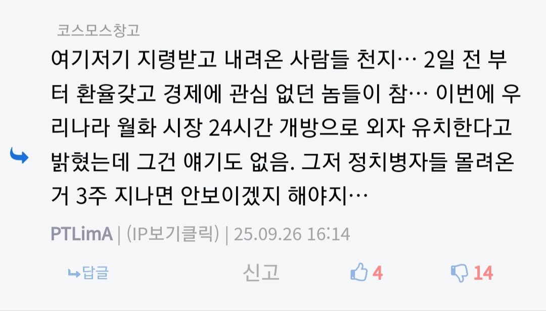 원달러라고 치자고 해도 그냥 왼쪽 숫자가 말이 안됨 | 25.11.15 21:56 | | |