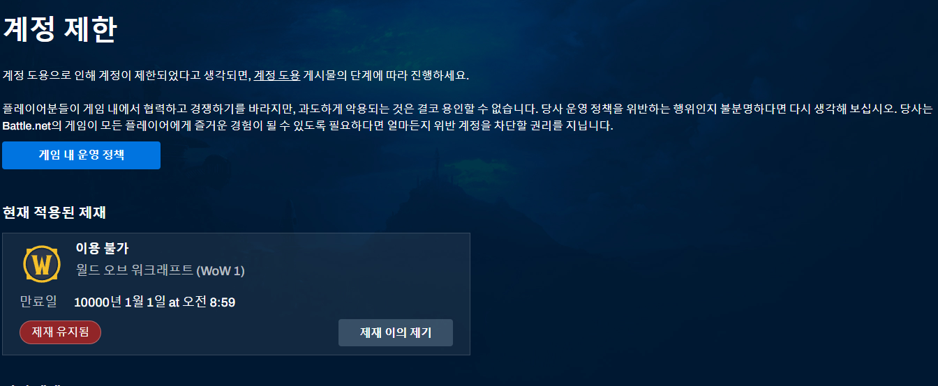 대체 어떤걸로 영구정지가 유지되는지 아무것도 블리자드는 제출하지 않음