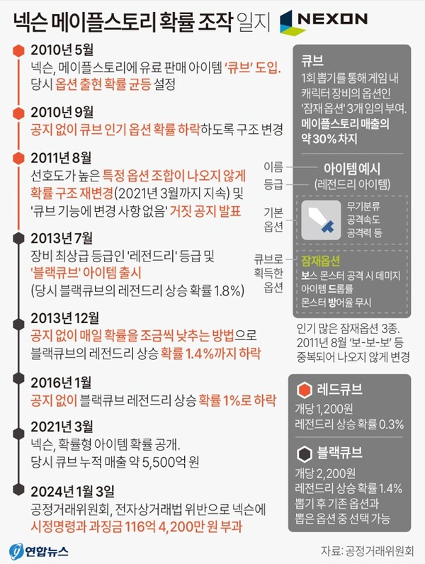 난 근데 저 짓거리를 메이플 큐브에서만 했을까임 넥슨에서 판매 중인 모든 확률형 아이템에 저 짓거리 하지 않았을 거라고 어떻게 믿지