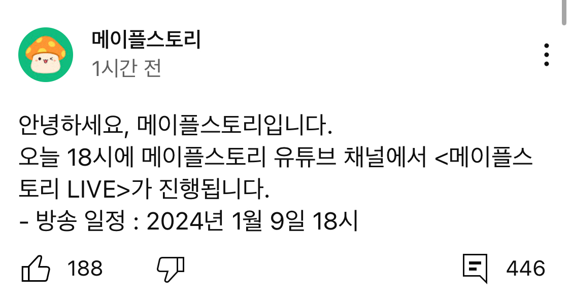 [정보] 1월 9일 오후 6시 메이플스토리 김창섭 디렉터 라이브 방송
