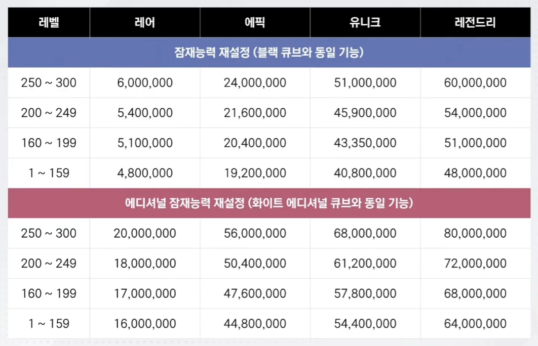 - 단 메소로 돌리는 잠재능력 천장시스템이랑 / 큐브로 돌리는 잠재능력 천장으로 별도 구분예정