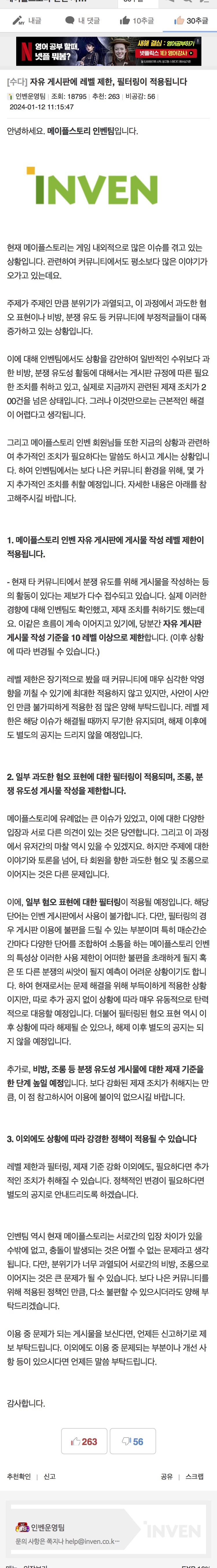 [정보] 넥슨 메이플스토리, 수익 대신 신뢰회복 택했다 [24]