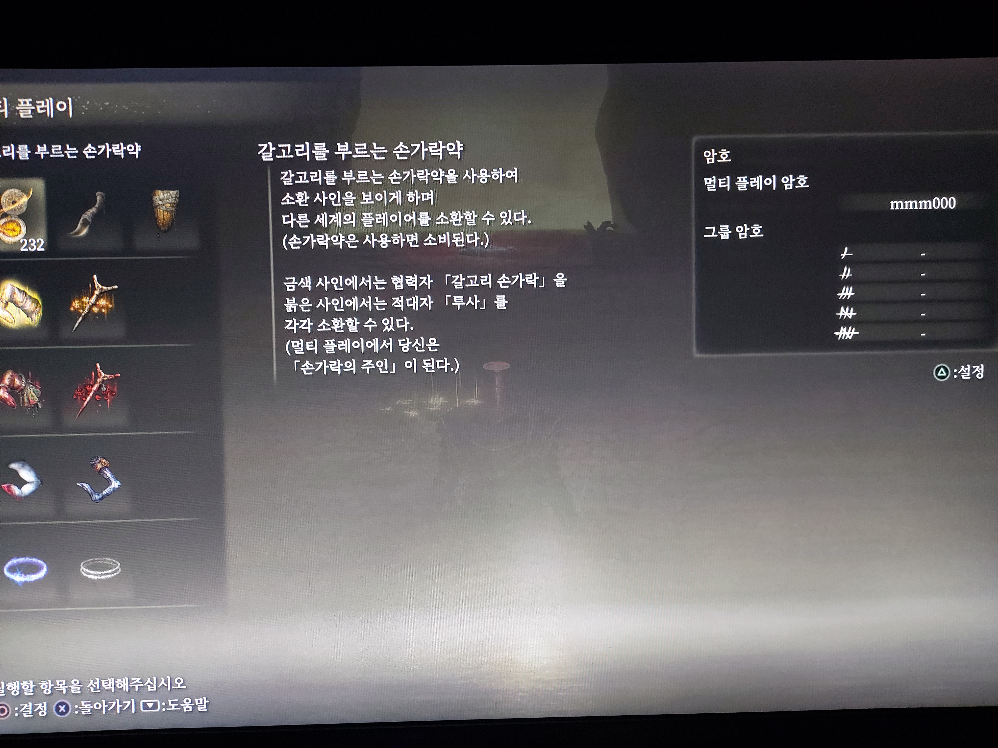 보스방 앞에 와서 저랑 같은 멀티플레이 암호를 설정하고, 손가락약을 사용하면 제 사인이 보일거에요. 만져서 소환하시면 됩니다. | 23.04.26 00:51 | |