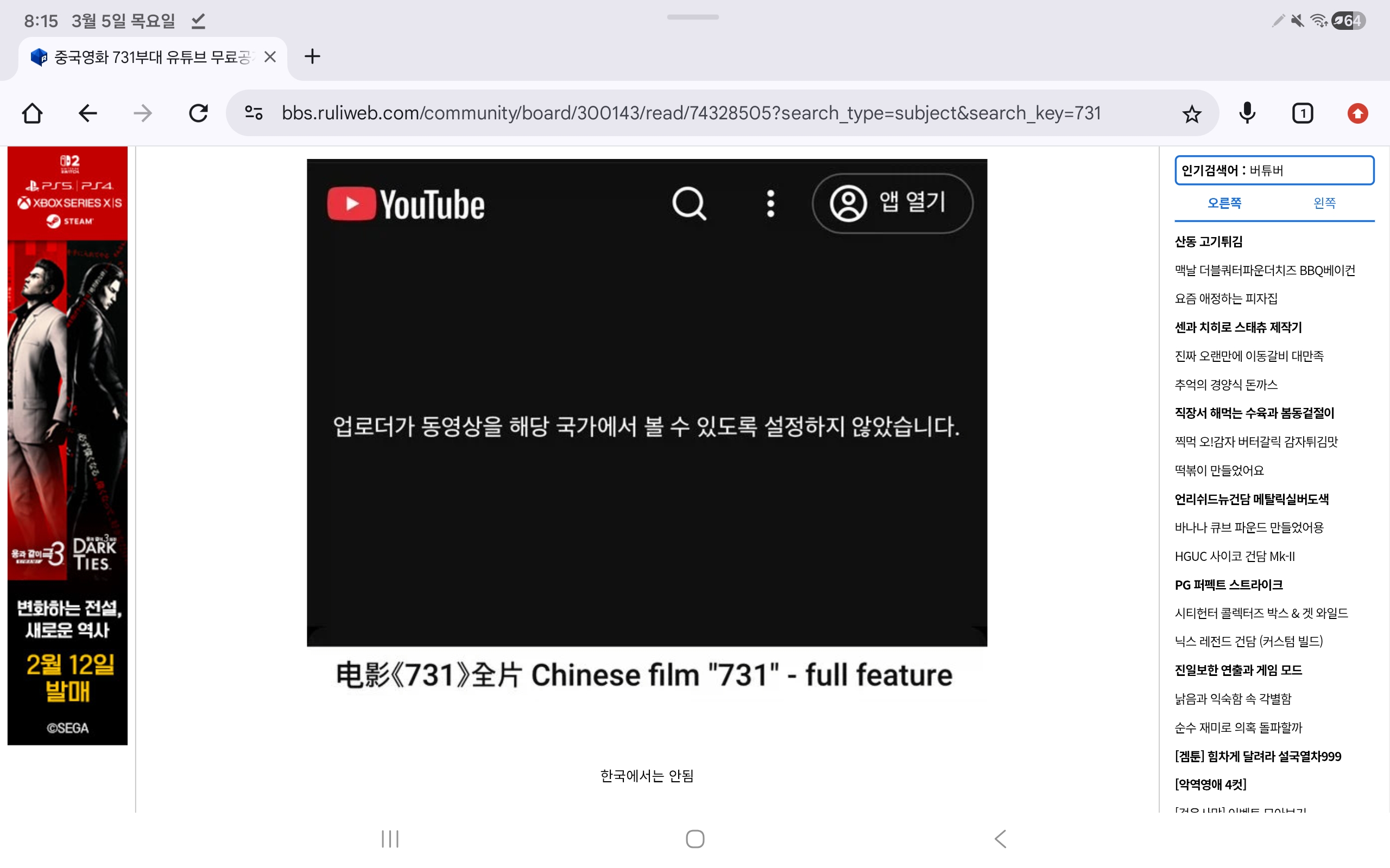 731이 정식개봉이지. 지역마다 유튜브 무료 공개 권한 다른거는 일상이고 | 26.03.05 20:29 | | |