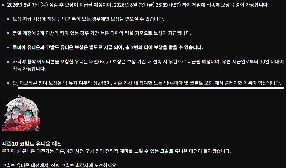 유니온 [ 팀 짜서 하는거 ] 보상 이요. | 26.03.05 20:17 | | |