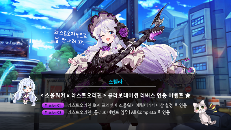 < 라스트오리진 X 소울워커 > 콜라보레이션을 기념하여 조금 특별한 이벤트를 준비했습니다 ★