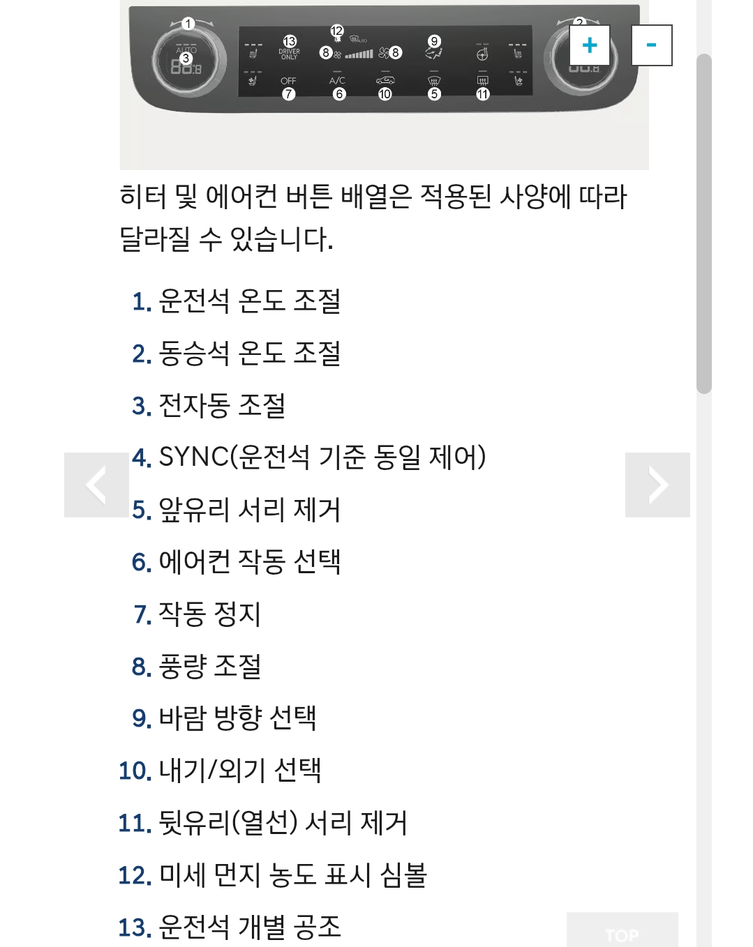 1열2열 공조세팅따로 해주는 버튼이라고 하네요