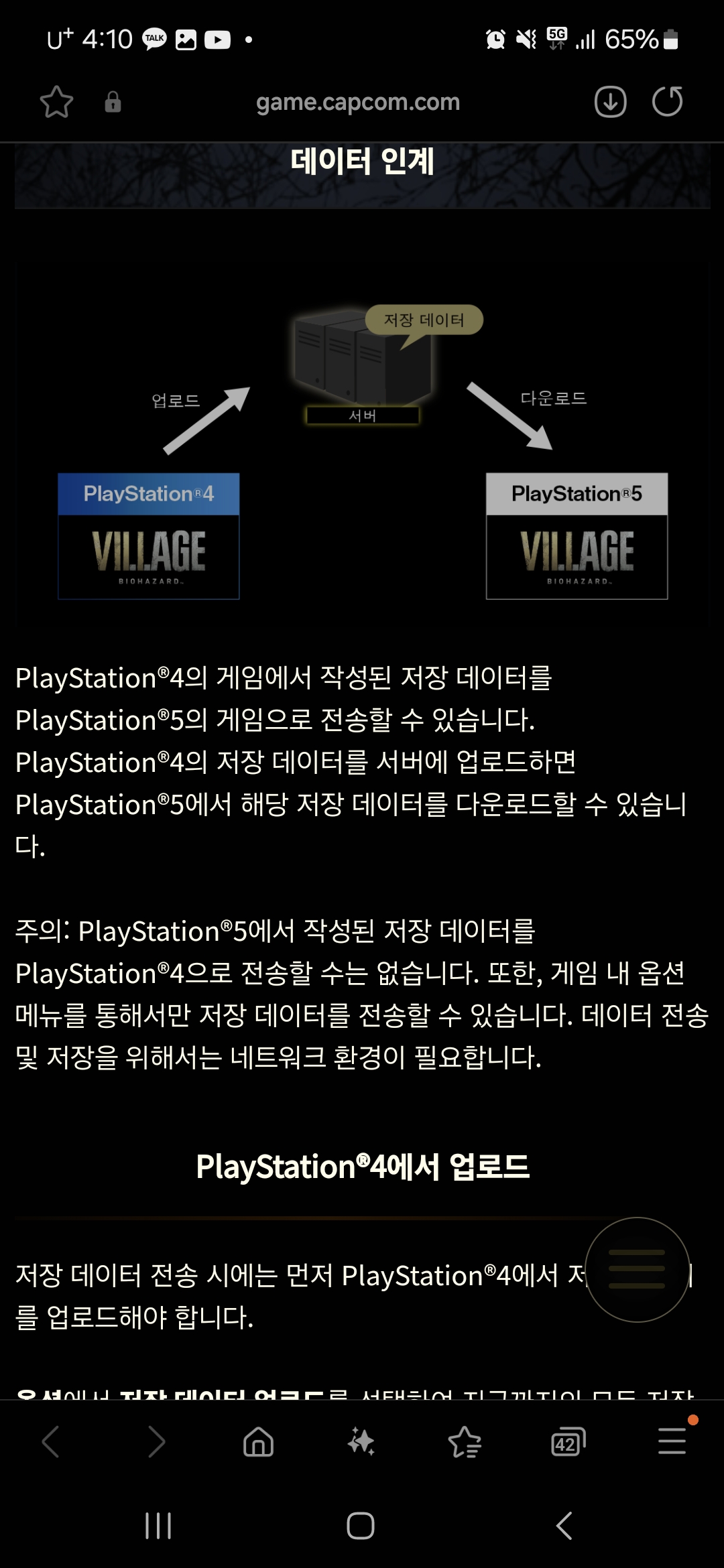 캡콤에 문의하니 게임4버전에서 옵션상 저장데이터 업로드하고 게임5버전에서 옵션상에서 저장데이터 다운하기가 있어서 인계가 된다고 합니다. 말씀하신 5버전에서 진행하다가 4버전거를 가져오면 5는 날라간다라고 보면 된다하셨는데 저는 5버전에서 플레이를 한적은 없습니다 일단 저도 최초에 공식안내처럼 했던거 같은데 안됐었거든요 오늘 집가서 다시 해봐야겠습니다 ㅎ