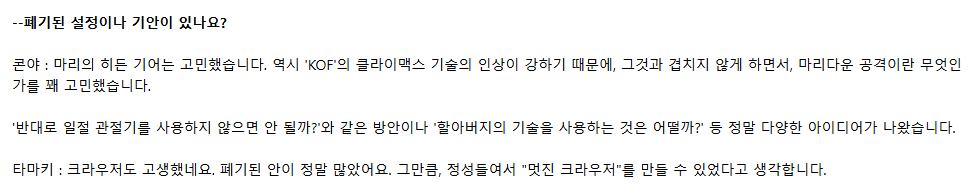 기존의 최고 단계 초필들이 KOF의 이미지가 강해서 다르게 하려고 했다고 하네요 | 26.03.19 18:40 | | |