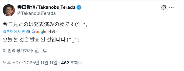 x에서 보니까 기존에 공개했던거 관련으로 회의하러 갔다고 하더군요. | 25.11.11 20:25 | | |