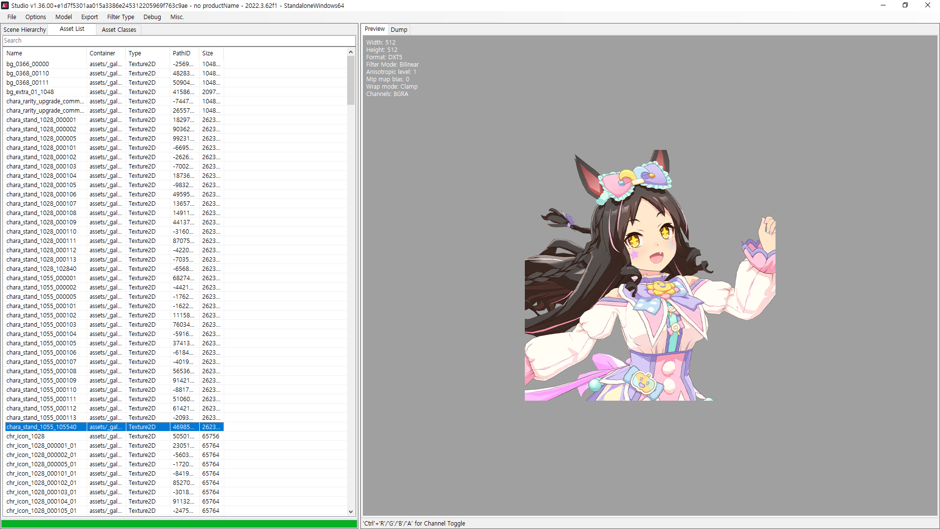 그중에서 Asset Studio 쪽이 GUI 형태인데다 여러 에셋을 동시에 열람/추출하기가 제일 쉬워서 좋더군요 ㅇㅇ