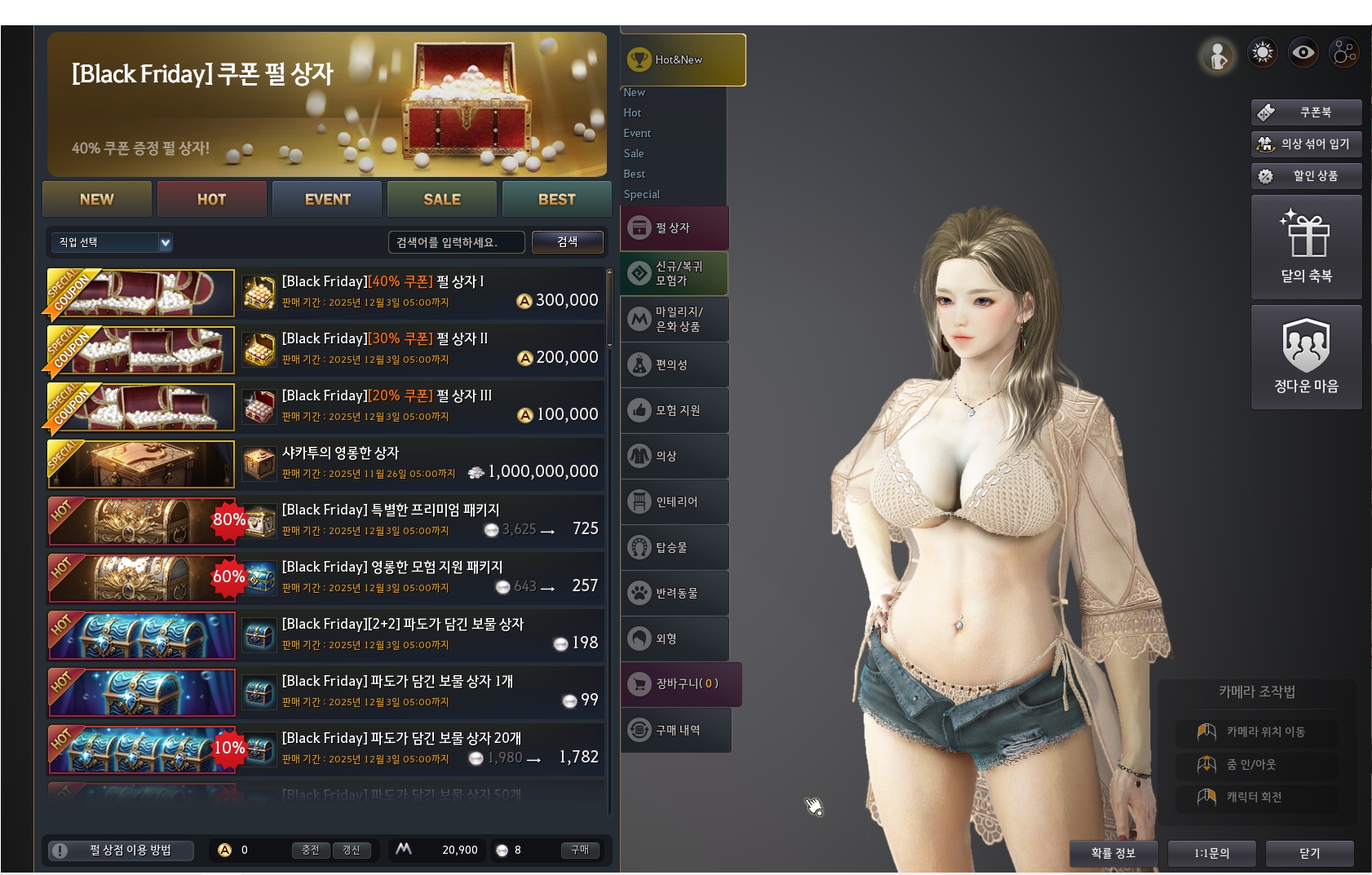 펄이랑 상품들 할인 엄청하긴 하더군요. 정말 예전이랑 다를정도로 BM은 공격적으로 엄청 퍼주던데 | 25.11.12 11:48 | | |