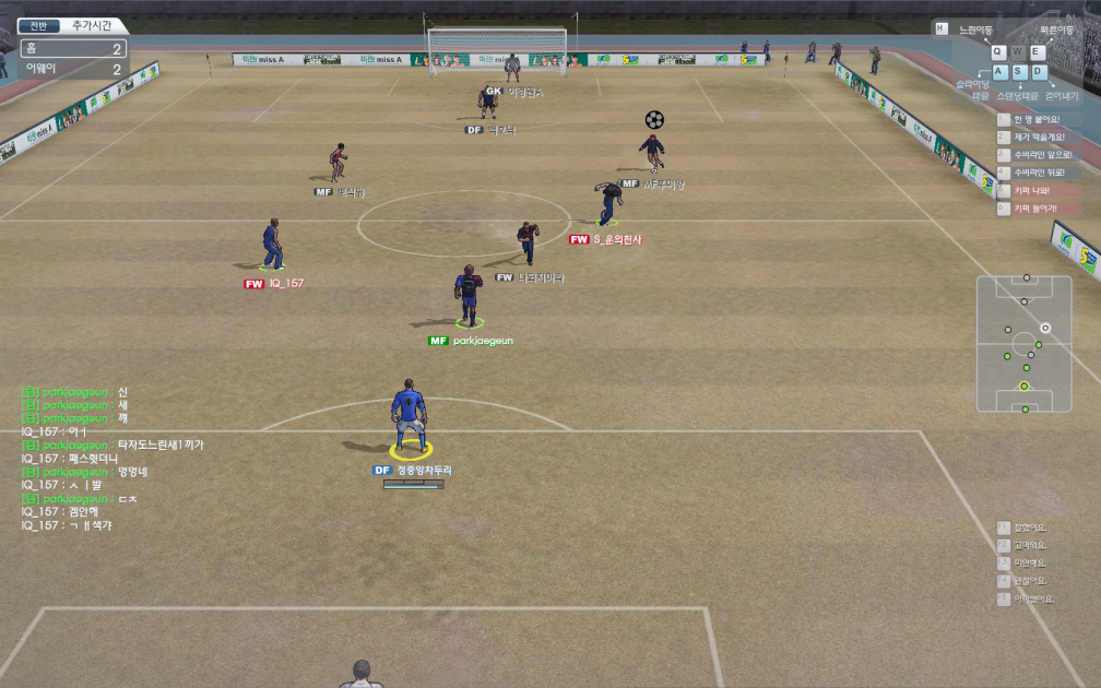 위장취업좀 없었으면.. 프로에선 위장하는애덜땜시짜증 특히 격수가 수비로들어오는(미♡)그럼 정보확인해서 같은편이라고 위장인지 아닌지 확인하고 겜시작해야되는데 방 나갈시간도없이 바로시작.; 강퇴기능도없고 나갈려고 매치취소 누를려고해도금방지나가고 암튼 사이드미드필더가짱인듯 ㅋ