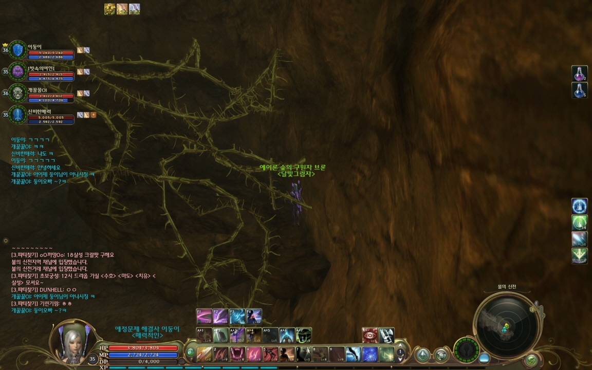 우선 여기.. 숙련된 수호성과 사냥하면 그럴 일을 거의 없겠지만 혹시나 실수로 불꽃 정령들에게 애드가 났다면 재빨리 입구로 돌아와서 스샷의 위치에 올라가면 100% 회피 가능합니다.