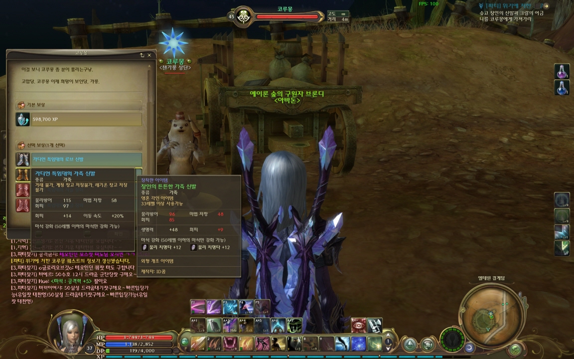 드디어 이속 신발 획득. 옵션은 보시는 바와 같습니다.