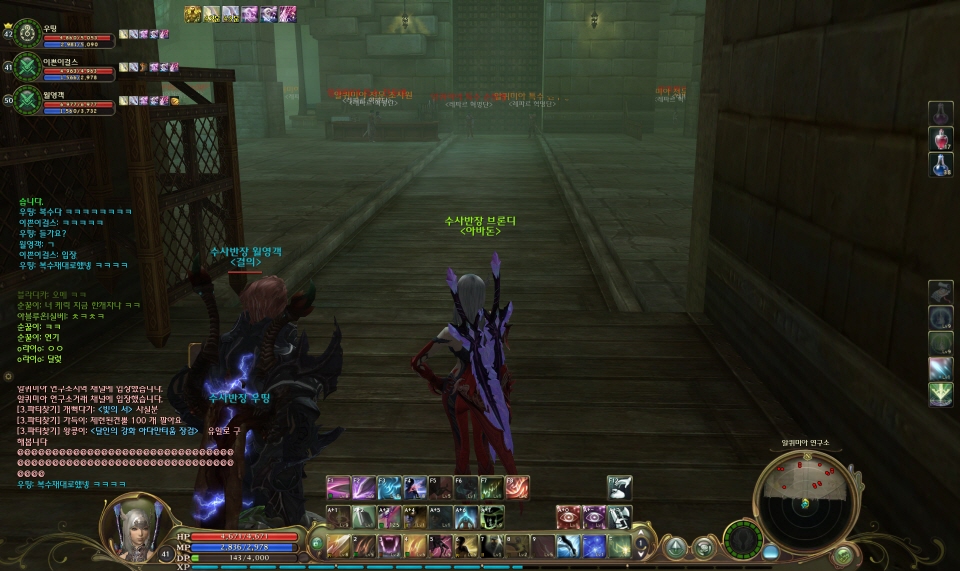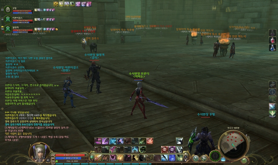 저는 호법/살성/마도로 깼었습죠... 증말 뭐 인던을 이따구로 만들어놨는지 싶은 던전이었습니다. 연구소 일지는 딱히 동시에 클릭 안하고 따로 루팅해도 룻은 됩니다. 일지가 사라지기전에만 주으면 문제없거든요. [...]