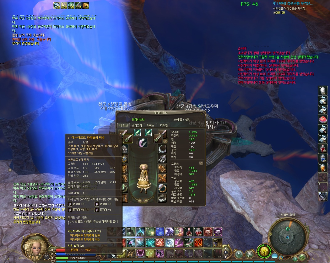 마석5짜리 박으셨다면 공이 500 넘으셨겠네요.. 역시 공600만들라면 어비스템 아니면 답이 없는듯...-_-