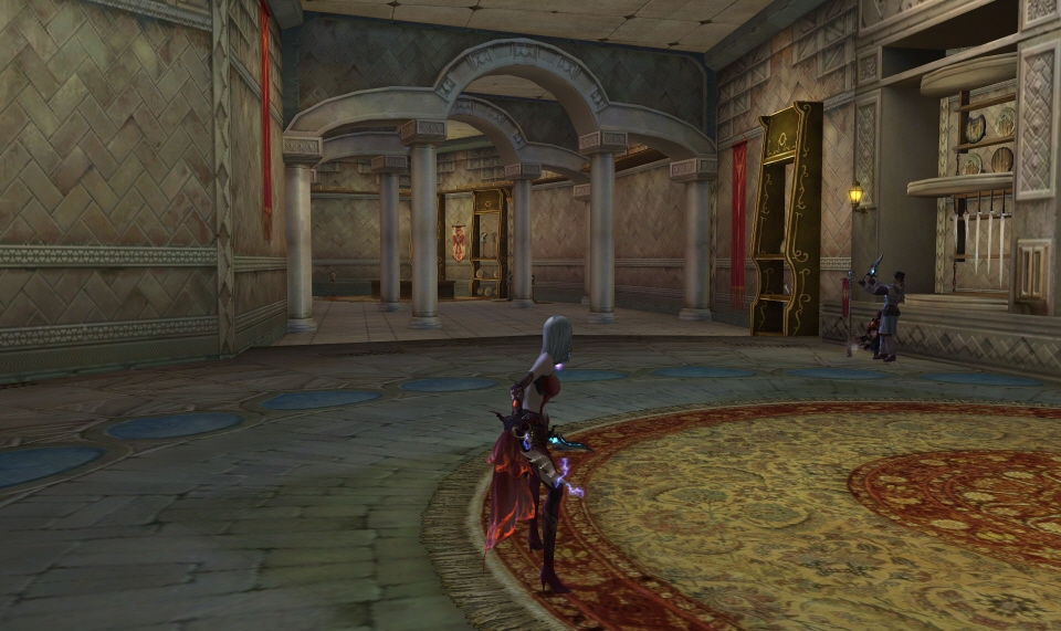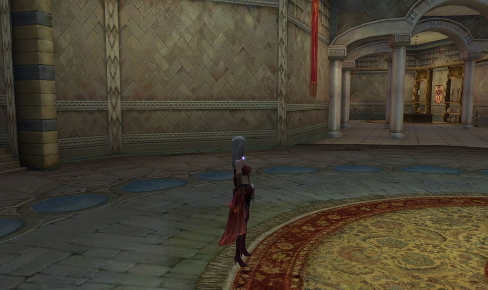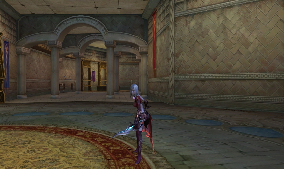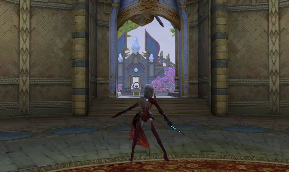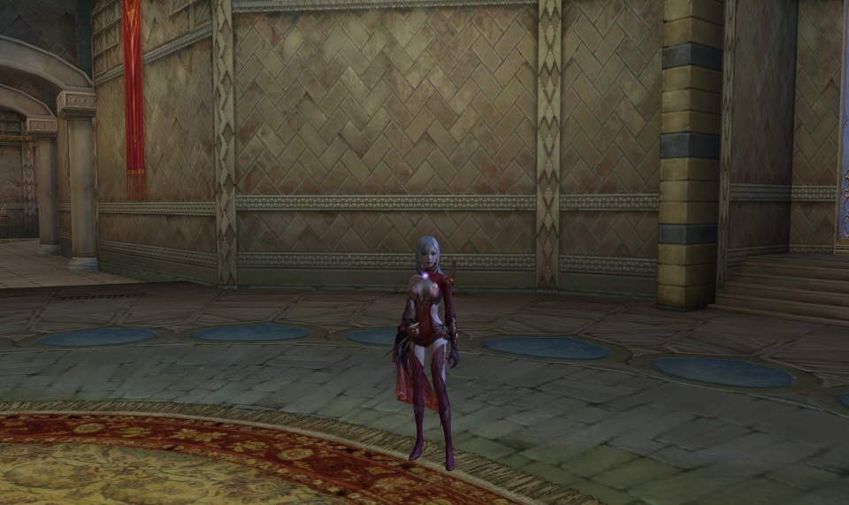 정면입니다. 일단 전체적으로 투피스로 이루어져 있고 붉은 색 계통의 방어구입니다. 오른쪽 옆구리 아래로 늘어져 있는 레이스가 포인트가 되겠습니다. 이 레이스 끄트머리 쪽에는 옅은 색이지만 글로우 효과가 있습니다. 이 상의를 암흑의 포에타 출전 1주일 만에 아누하르트 정예병의 단도화 함께 한 날에 얻었네요.