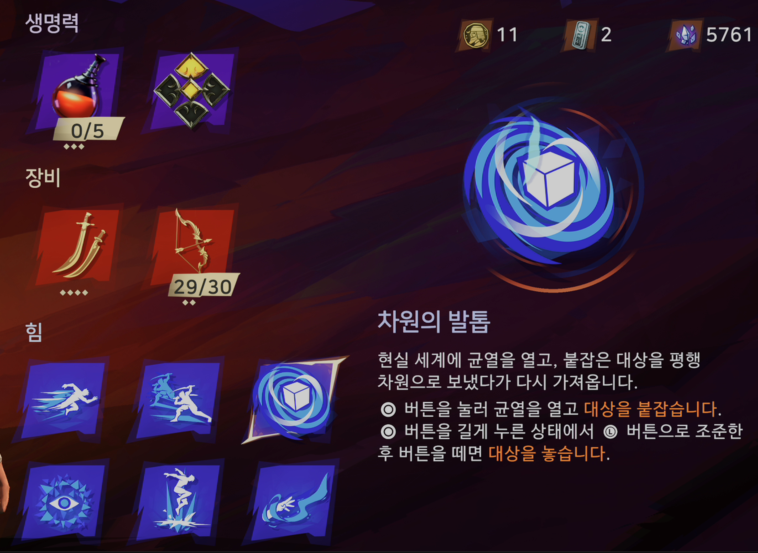 첨부된 스샷에있는 차원의 발톱 힘을 얻으시고 물체를 던져서 폭파해야합니다