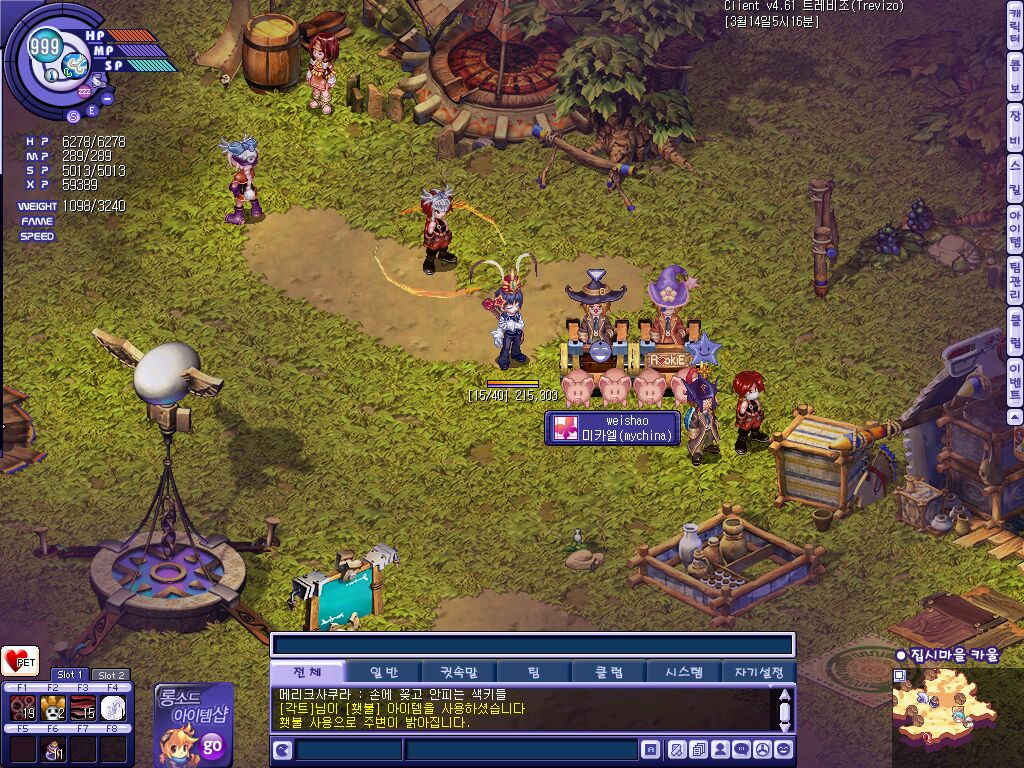 스샷처럼 중국인 매크로들은 작업이 끝난후 두 포주들이 있는곳으로와서 그날 먹은 레어템을 포주들에게 바칩니다.