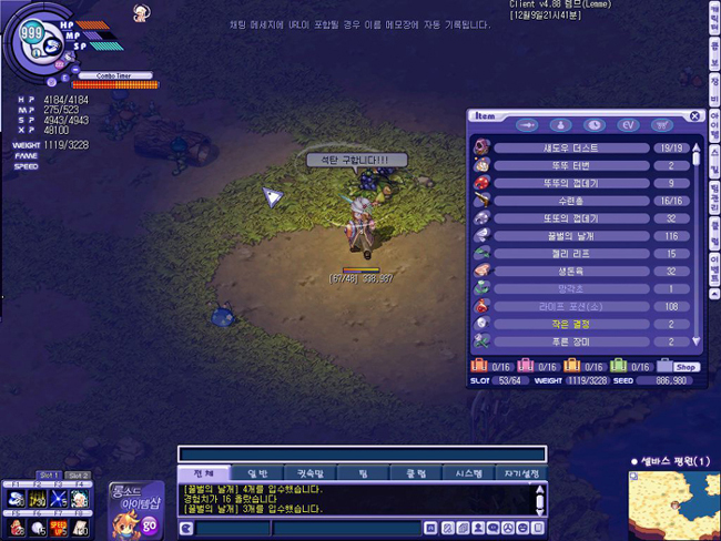 인간적으로 셀바스 1에 있는 메크로는 좀 제거해 주십시요...가뜩이나 석탄 모은다고 우울한데 가끔씩 중국에서 날라온 루시안 두세마리가 그것도 셀바스1에서 퀣 퀣거리며 뛰어나와서 원거리 공격하면은...그래놓고 또 매크로 잡았다고 명단 올리고 앉아있으면!! 사냥할맛도 안나고, 그래놓고 시드 가지고 가서 이젠 소용도 없는 매크로 탐지기 사라고 말하고 있으면은...우울해 죽겠습니다!!ㅠ_ㅠ