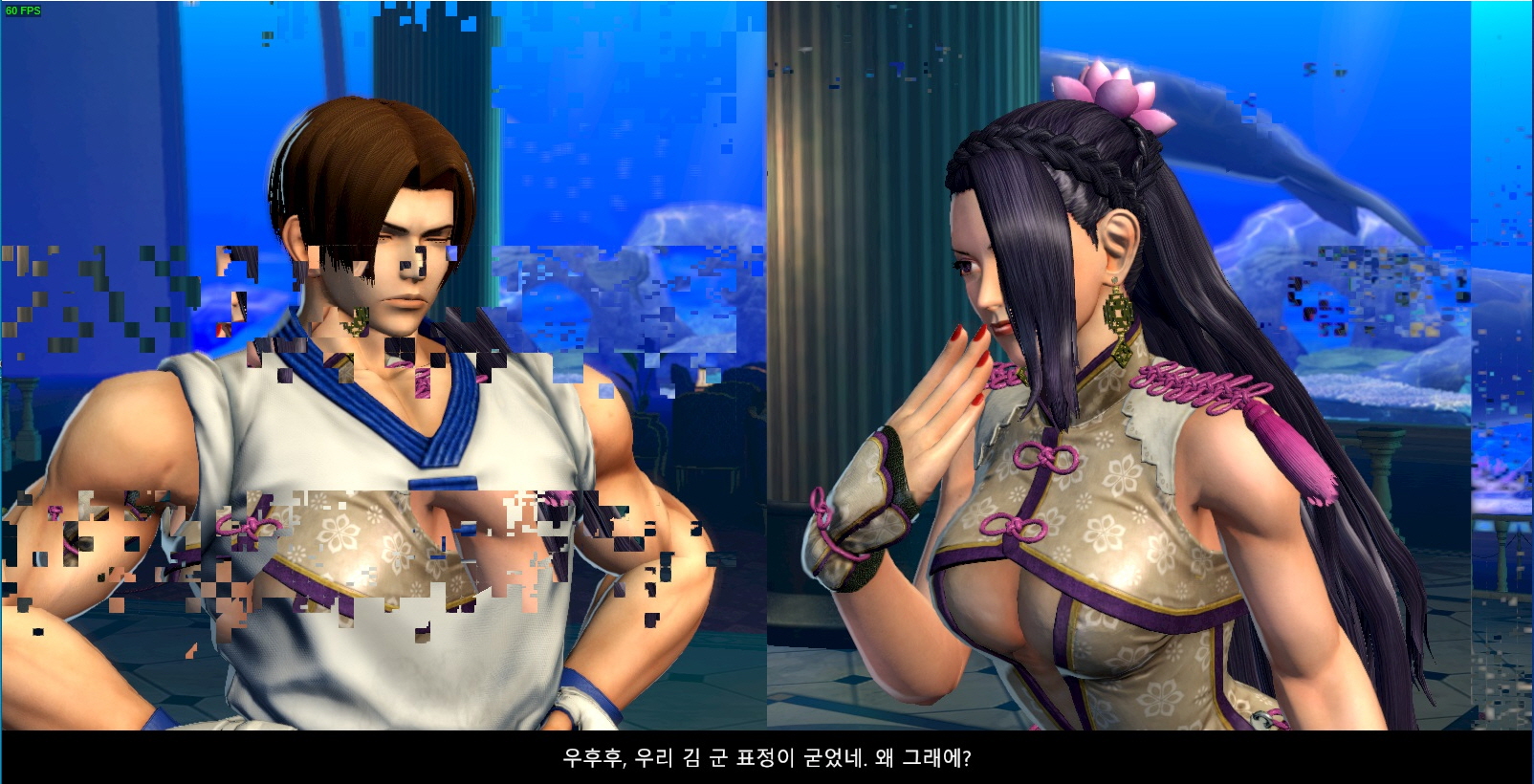 일반메뉴나 게임플레이 화면은 멀쩡한데 이렇게 스토리 모드에서 캐릭터 대전전 대화 장면만 이럽니다